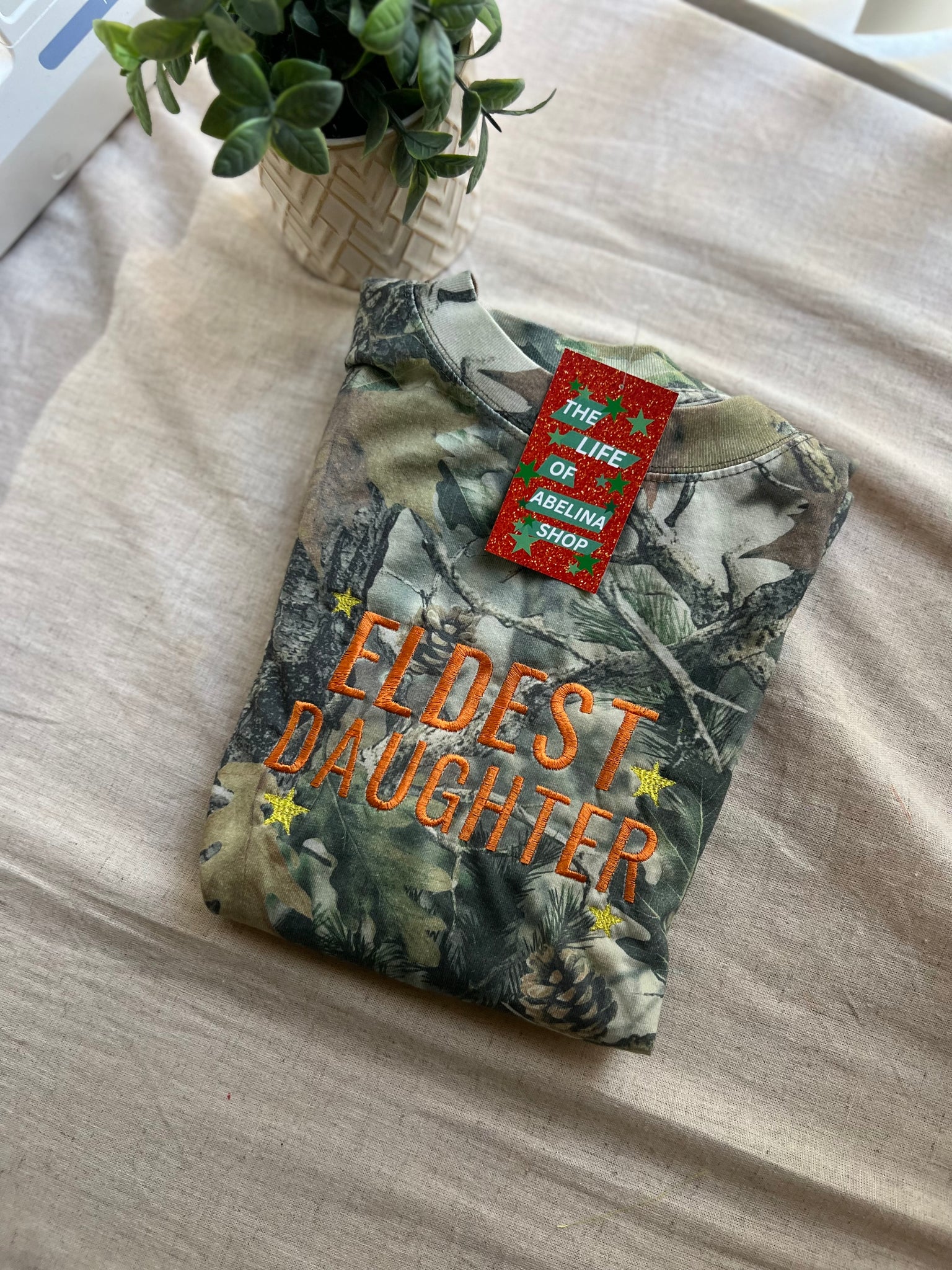 “ELDEST DAUGHTER” Embroidered Camouflage or Mint CREWNECK TSHIRT OR HOODIE Options