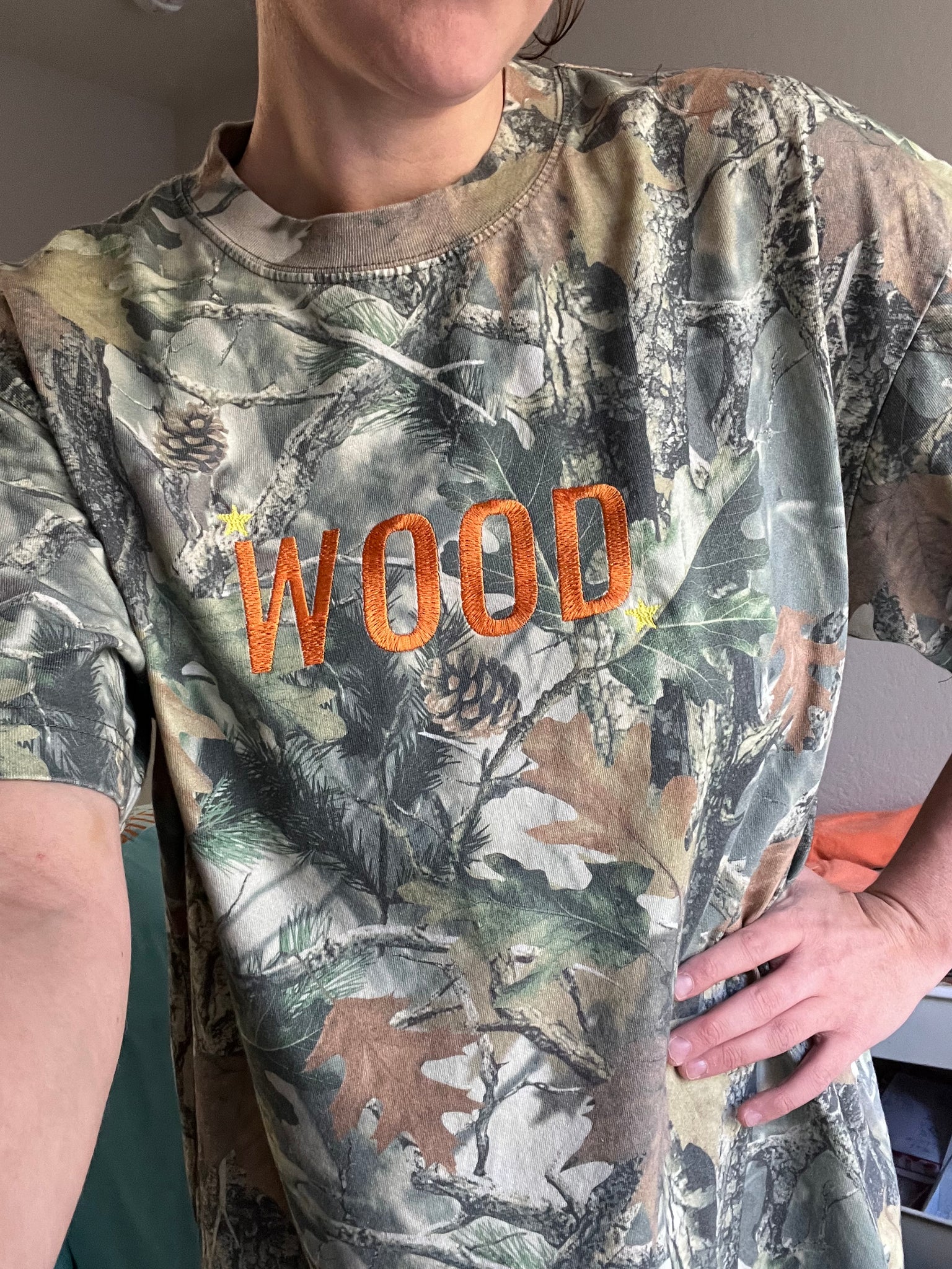“WOOD” Embroidered Camouflage or Mint Options